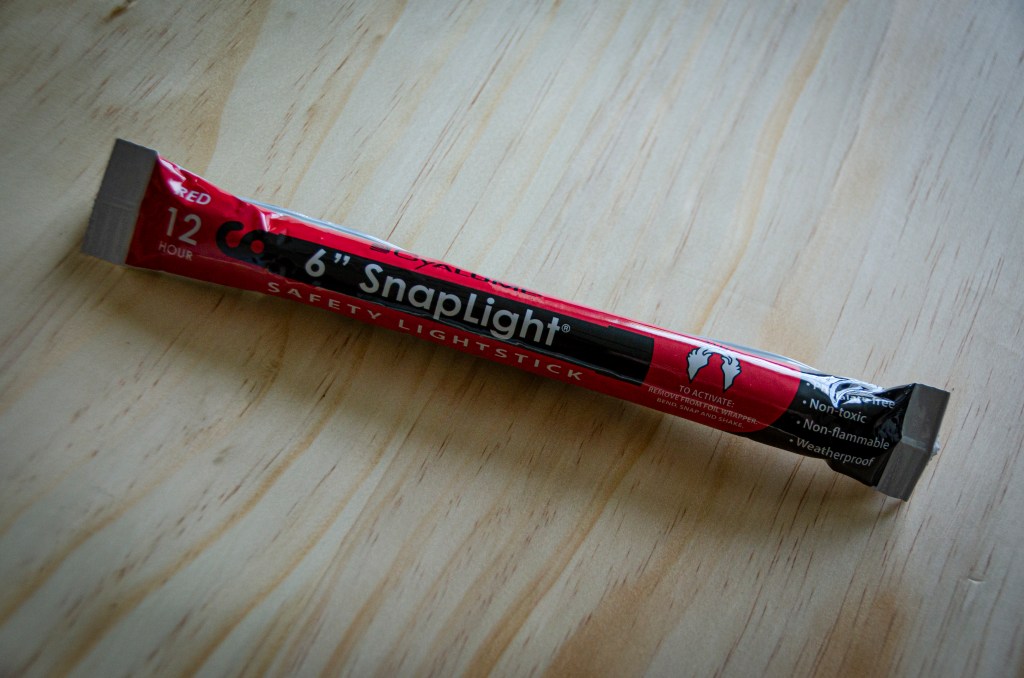 So, I picked up the Cyalume series of Chemlights a while back for use in my various outdoor misadventures. The brand came pretty highly recommendend, and for some of the available colors, you’re getting some pretty good stuff. This time around, I wanted to use the red ones, as I’d heard they were the best for night time use. I’ve gotta say, I was pretty disappointed. The red chemlights are really, really, really dim. I’m talking, you’ve gotta be three or four inches away from what you’re using type dim. I was struggling to find my way through my own house efficiently, and I would absolutely never try and use the red ones out in the woods. I have previously used other colors to good effect.